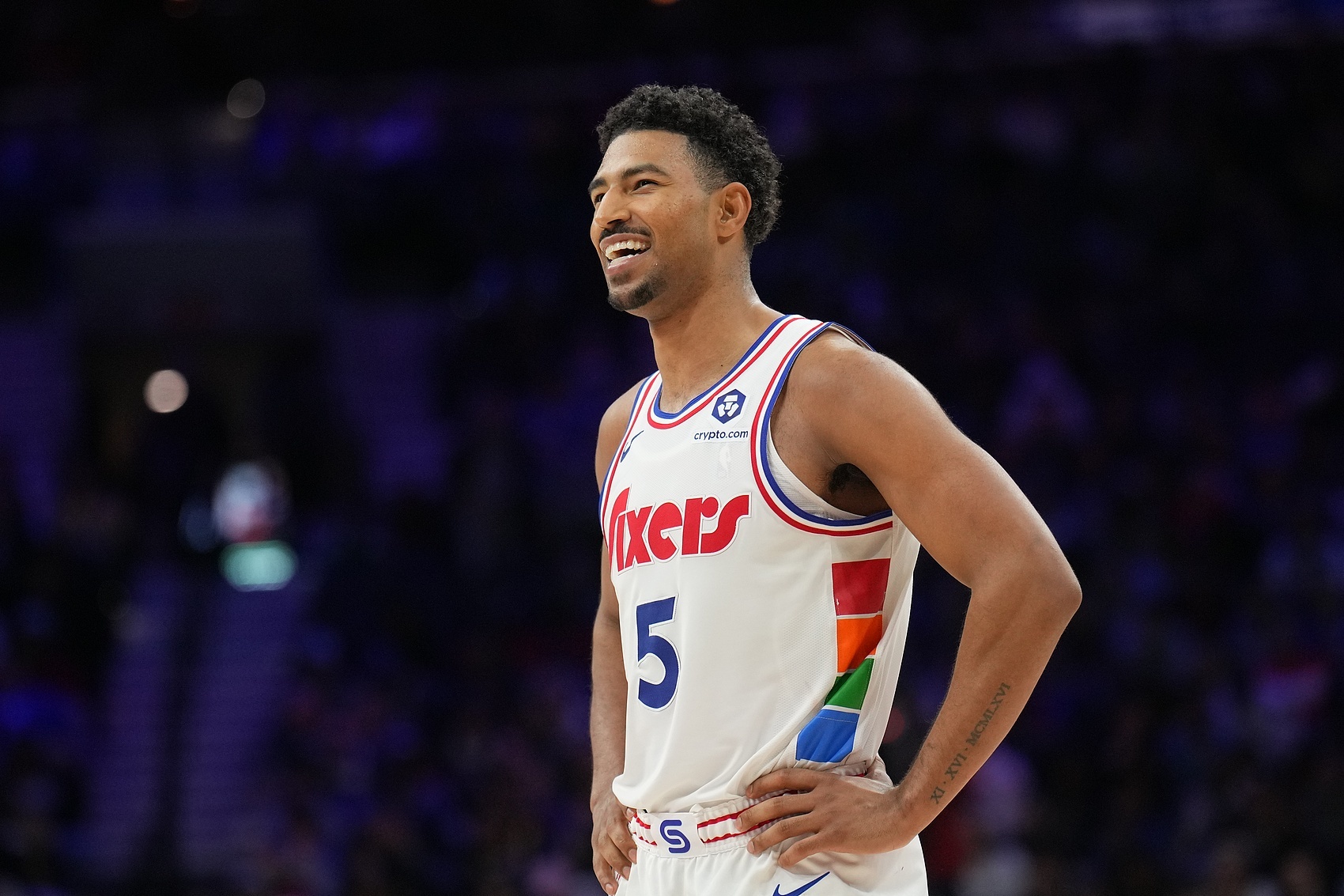 76人球員格萊姆斯本場比賽打得不錯,最后時刻爵士采用犯規(guī)戰(zhàn)術時他罰球穩(wěn)健4罰全中。