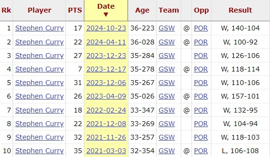 本場(chǎng)過后,庫(kù)里目前對(duì)開拓者10連勝,他上次輸給開拓者還是1469天前。