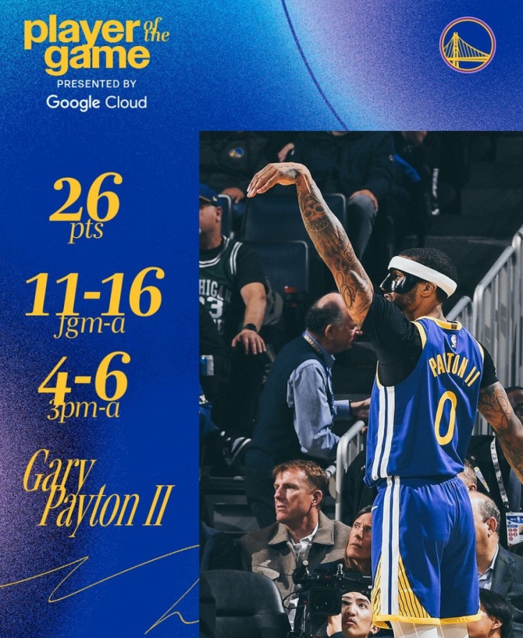 爆砍生涯新高26分!小佩頓當選本場勇士隊最佳球員