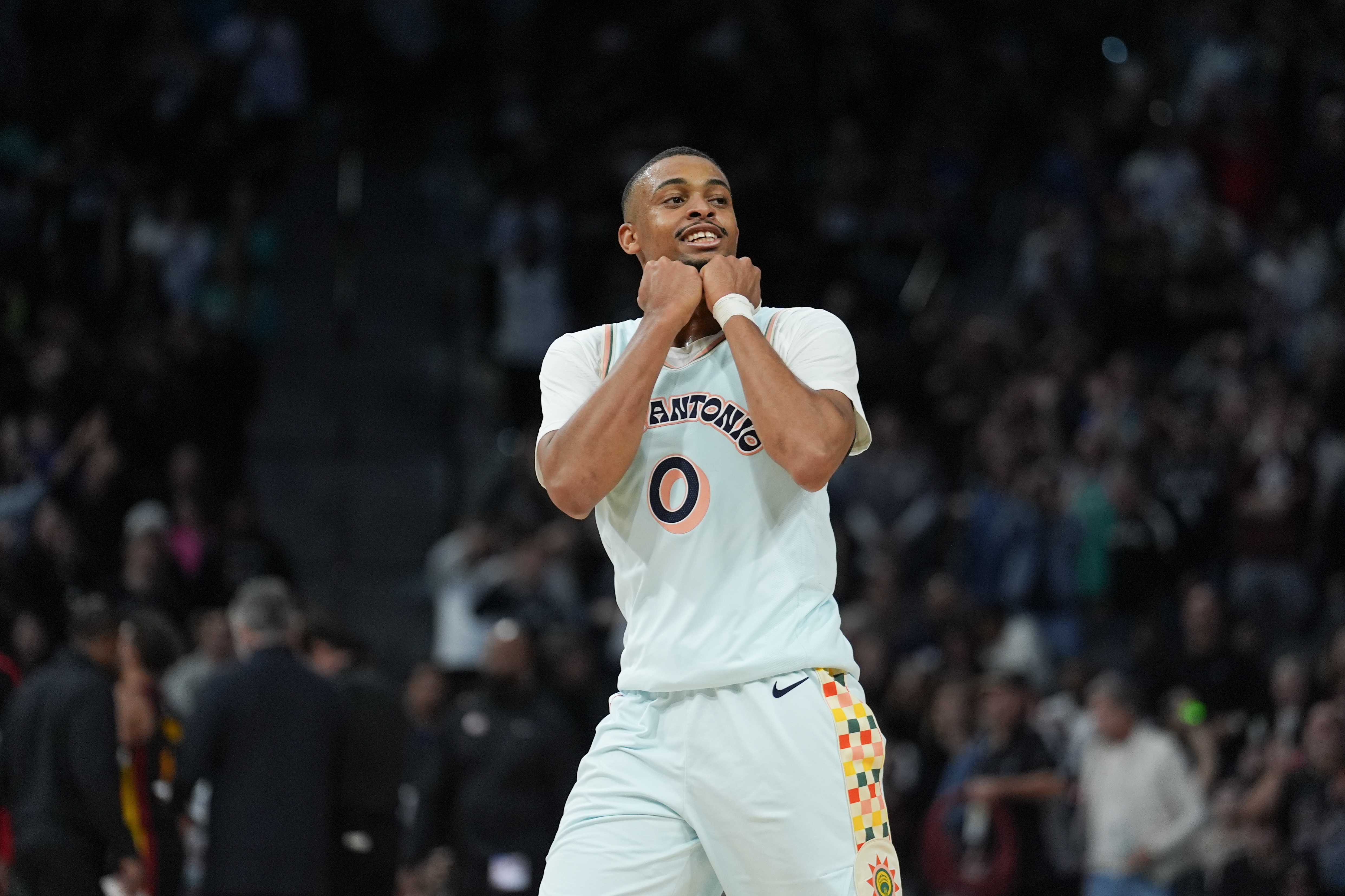 本場比賽,馬刺球員凱爾登有著不錯的發(fā)揮,他替補出戰(zhàn)29分鐘,16投10中,三分6中4、罰球5中4,空砍28分5籃板1搶斷。