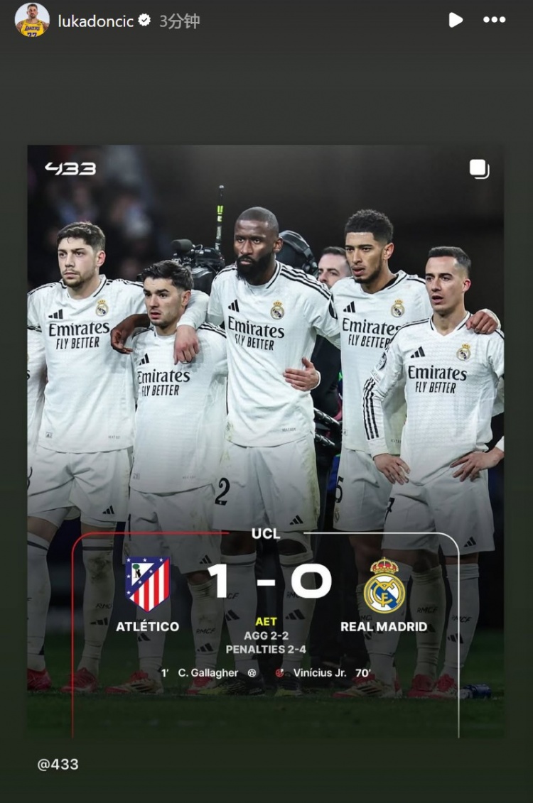 皇馬淘汰馬競(jìng)晉級(jí)歐冠八強(qiáng)!東契奇INS轉(zhuǎn)發(fā)祝賀老東家