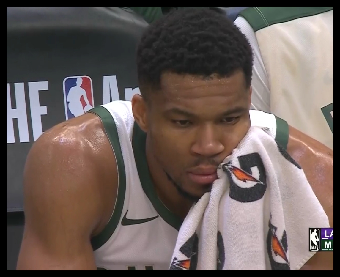 在想什么呢?雄鹿大比分領(lǐng)先湖人 字母哥在替補(bǔ)席若有所思~