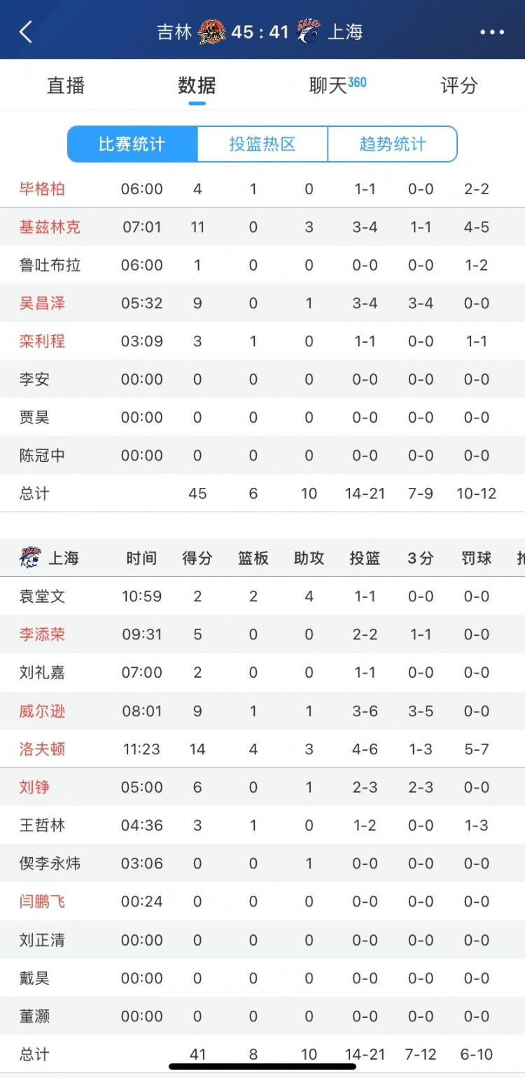 對攻大戰(zhàn)!首節(jié)吉林多點開花轟出45分 上海也有41分進賬!