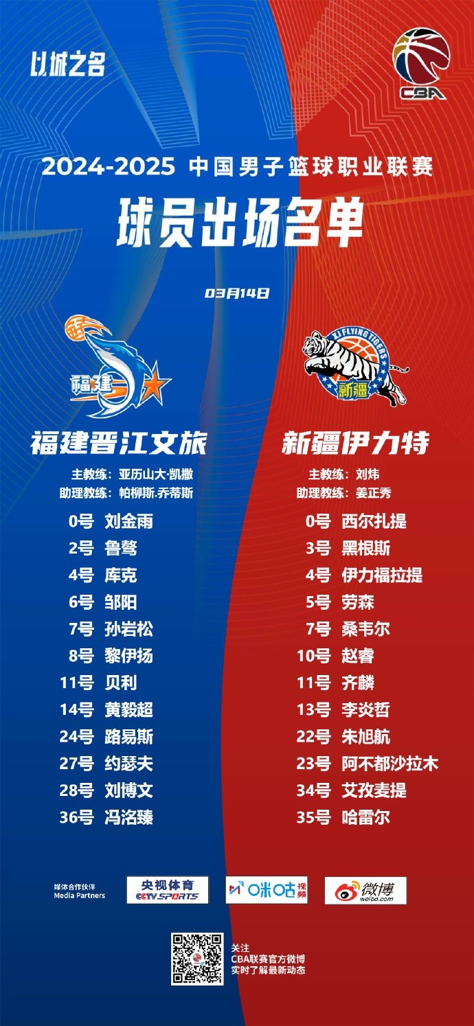 3月14日訊 今晚7點35分,新疆男籃將在客場挑戰(zhàn)福建男籃。