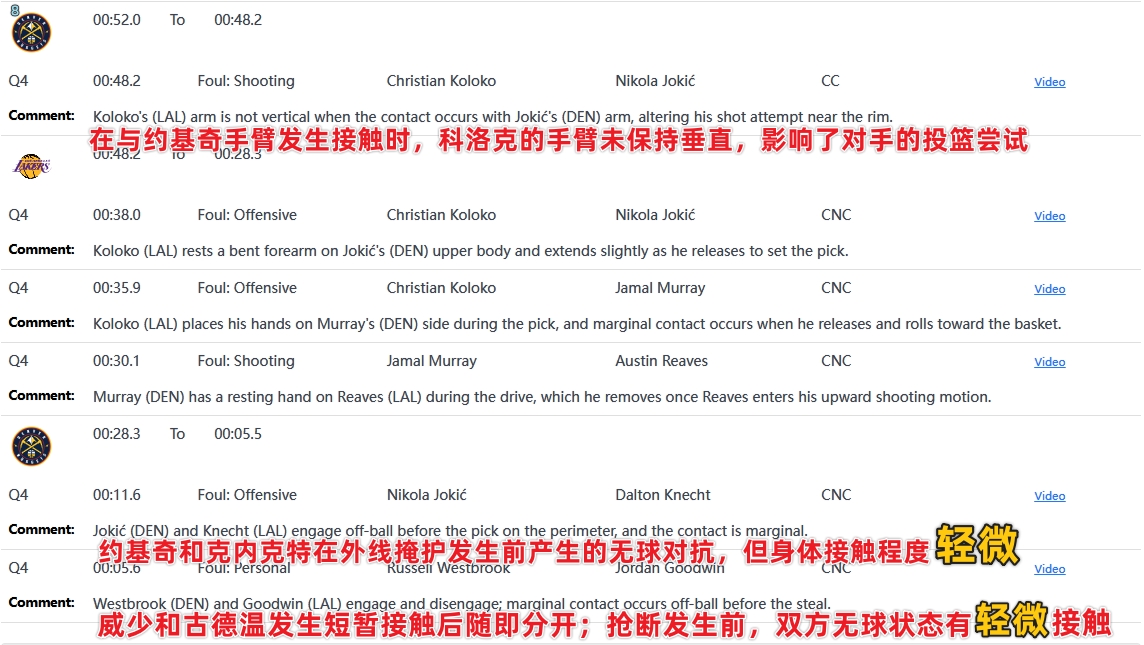 湖掘L2M:所有判罰正確 科洛克手臂未伸直 約基奇掩護(hù)前輕微接觸