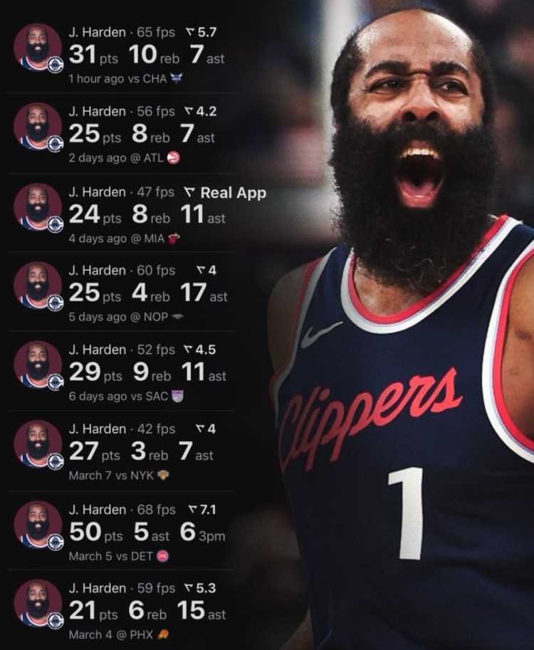 近八場比賽,哈登場均29分6.6籃板10.1助攻。