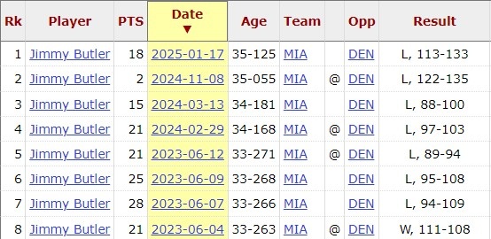 此役告負后,巴特勒個人對掘金是8連敗,上次贏球還是2023年總決賽G2。