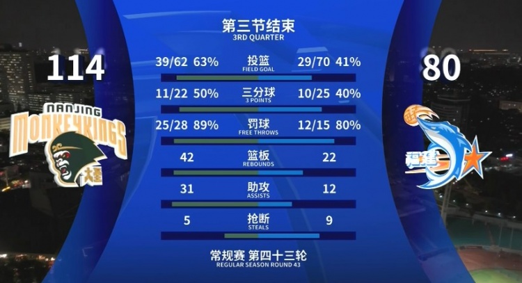 全面壓制!同曦三節(jié)領(lǐng)先34分 投籃命中率63%&籃板42-22&助攻31-12