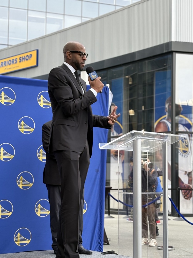 我還想歡迎所有曾經(jīng)效力于勇士的優(yōu)秀球員、NBA球員、2015年冠軍隊(duì)的球員,以及安德烈的所有朋友。今天將是非常美好的一天,真的非常美好。