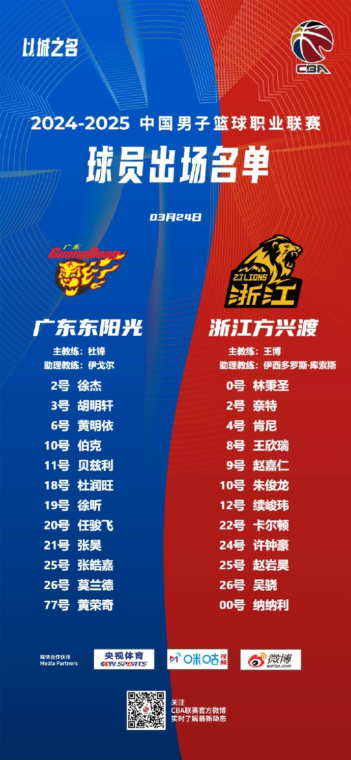 廣廈隊:林秉圣、奈特、肯尼、王欣瑞、趙嘉仁、朱俊龍、續(xù)峻瑋、卡爾頓、許鐘豪、趙巖昊、吳驍、納納利。