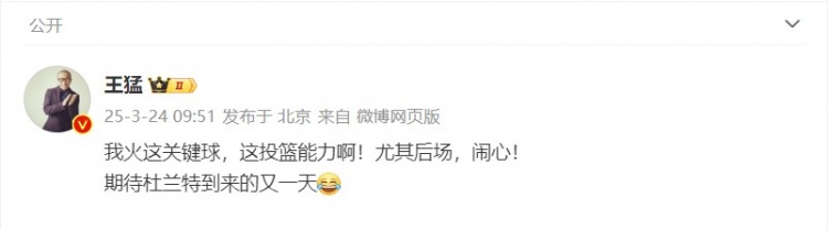 王猛在個(gè)人微博上寫(xiě)道:“我火這關(guān)鍵球,這投籃能力??!尤其后場(chǎng),鬧心!