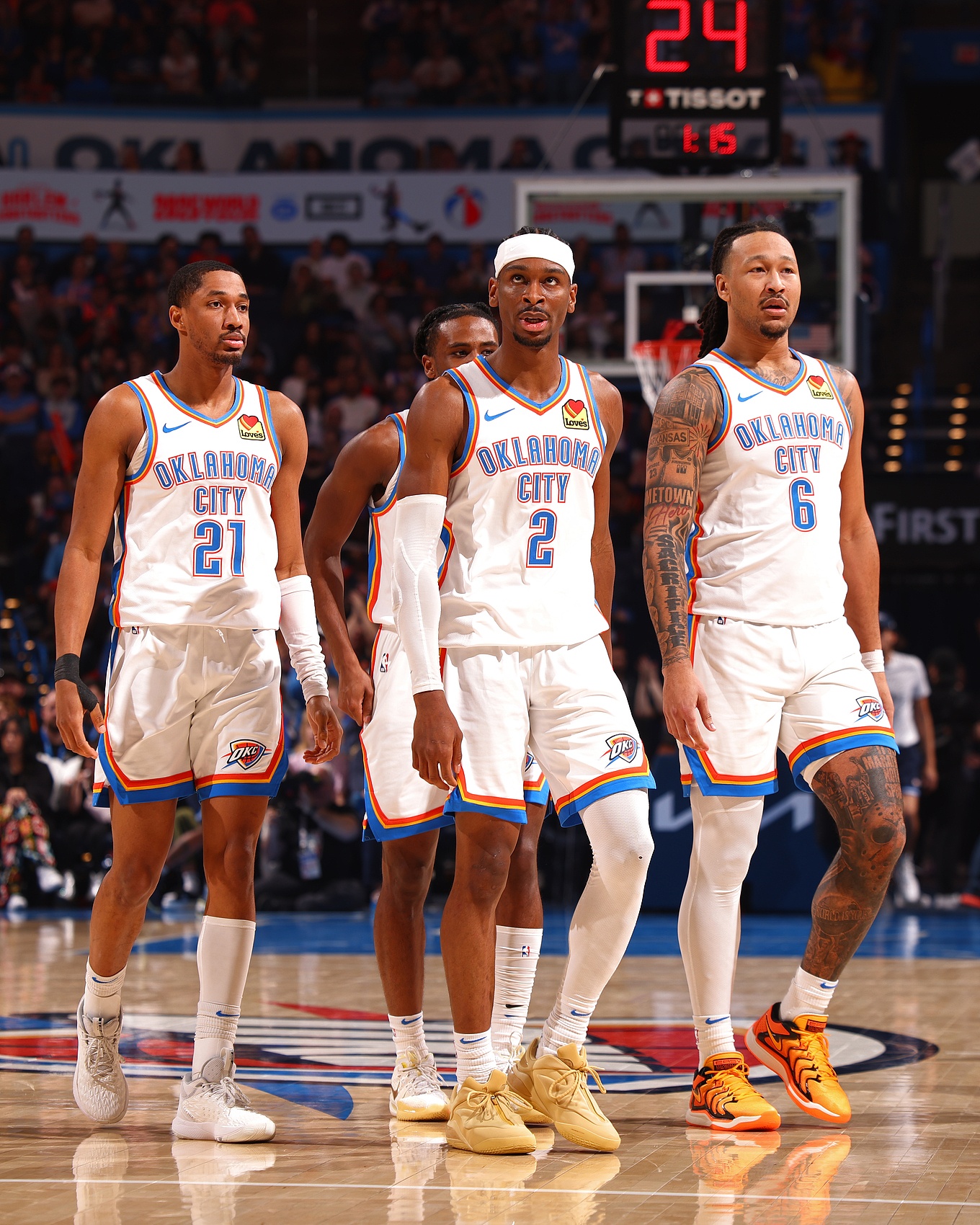 赫林:我想我現(xiàn)在會傾向于德雷蒙德。格林的球商和努力貫穿了整個賽季,對一支迫切需要出色防守的球隊來說,這一點至關(guān)重要,而斯蒂芬-庫里在賽季的大部分時間里都是唯一的進(jìn)攻領(lǐng)袖。當(dāng)格林進(jìn)行防守時,對手在籃筐周圍的命中率只有54%,比他們的平均水平低了九個百分點以上。這位35歲的球員場均搶斷和蓋帽都超過一次,他將成為贏得該獎項最年長的球員。我認(rèn)為無論誰贏得該獎項,都會受益于雷霆隊擁有如此多值得注意的防守者,以至于沒有哪一位雷霆隊球員有真正的機會獲得投票的第一名。