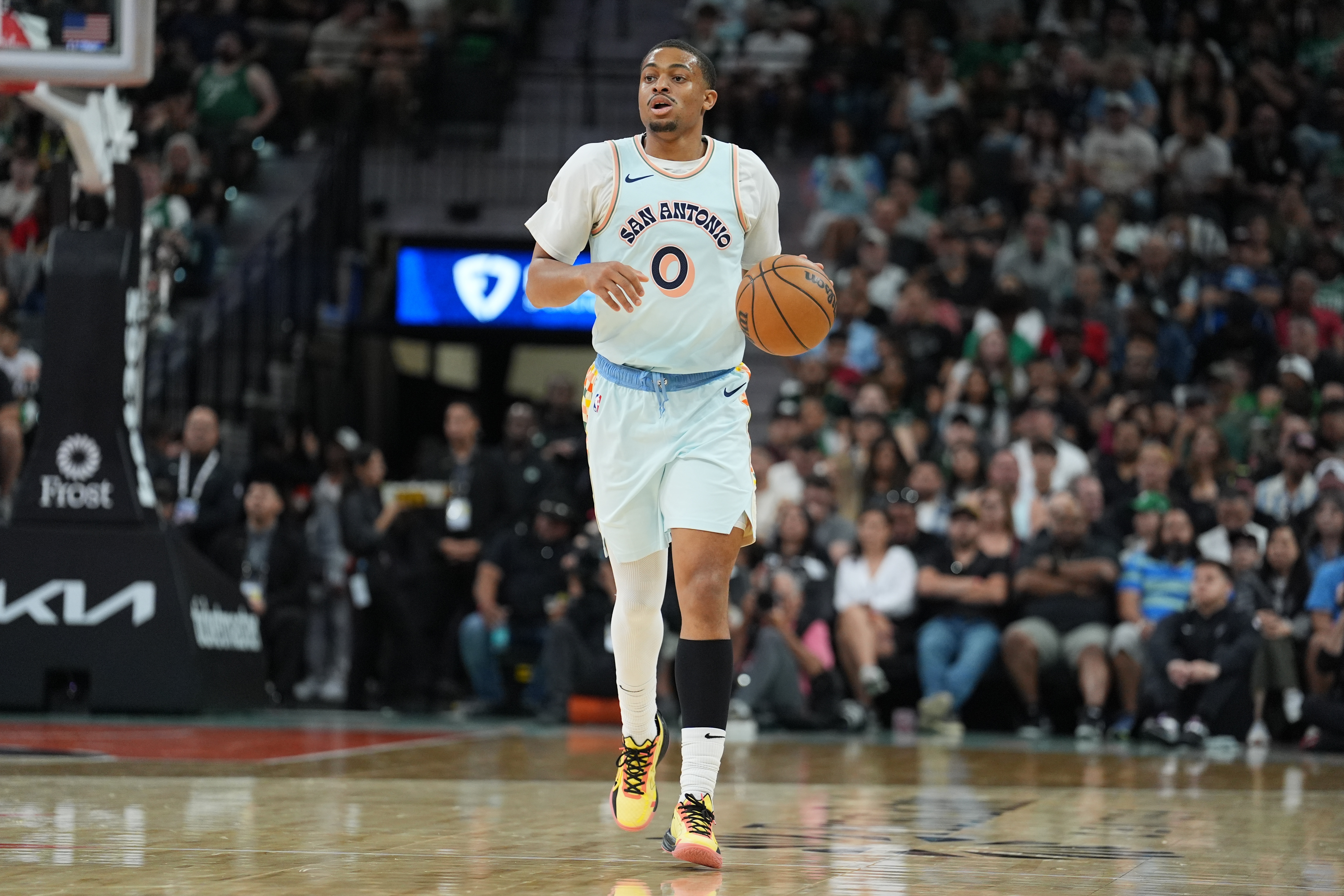 上半場(chǎng)比賽,馬刺全員狀態(tài)一般,只有凱爾登進(jìn)攻狀態(tài)不錯(cuò),苦苦支撐,他替補(bǔ)出戰(zhàn)15分鐘,8中6,三分3中1,罰球1中1拿到14分(全隊(duì)唯一上雙)1籃板2助攻,正負(fù)值-15。