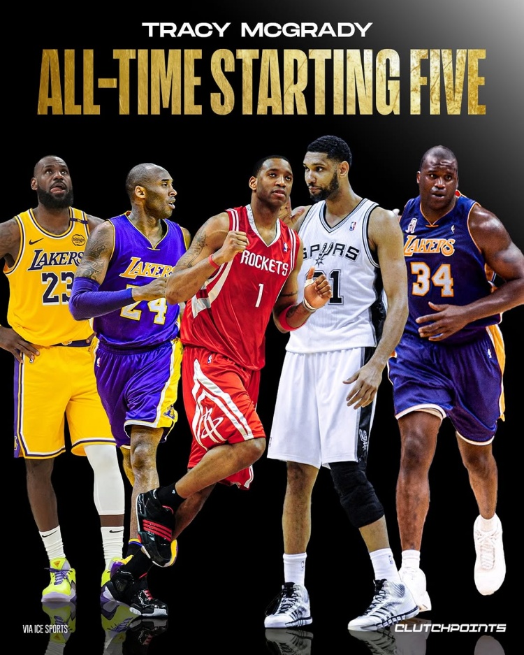 麥迪說道:“我選擇勒布朗當控衛(wèi),科比得分后衛(wèi)。我去打三號位,鄧肯四號位,奧尼爾五號位。沒有不尊重任何人,這就是我的五人組?!?/p>