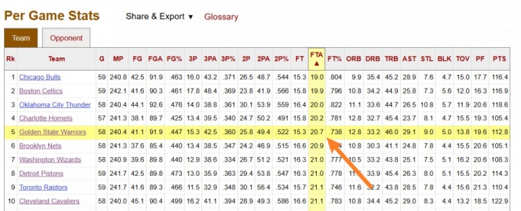 本場比賽之前,勇士本賽季場均20.7次罰球,聯(lián)盟第5少。