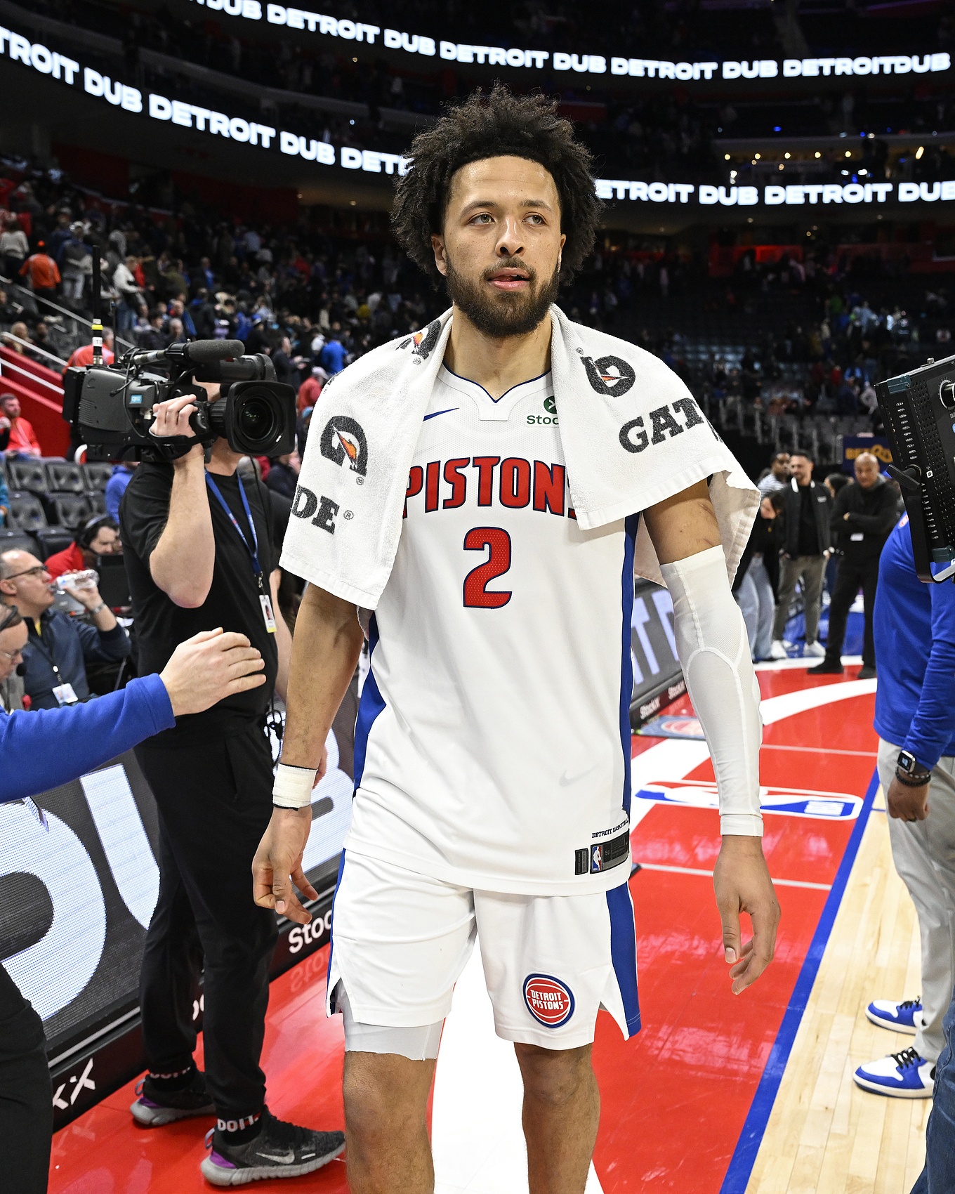 那天晚上晚些時候,在活塞的更衣室里,康寧漢姆走到自己的更衣柜前,把一條毛巾搭在肩上。他看起來并不沮喪。球員們當(dāng)然會失望,但氣氛仍然輕松。隊友們在離開前互相擊掌。