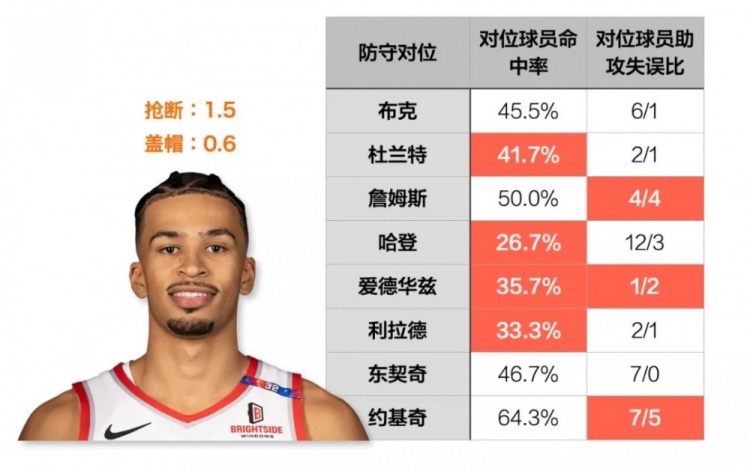愛(ài)德華茲面對(duì)這位喬治亞大學(xué)的前隊(duì)友,則是攻也不行,傳也不行。不僅命中率被限制到35.7%的水平,失誤更是比助攻多......