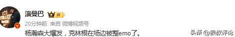 有球迷拍攝到楊瀚森爆發(fā)時間段,開拓者暫停階段,開拓者首發(fā)中鋒克林根面無表情,克林根在場邊被整emo了。
