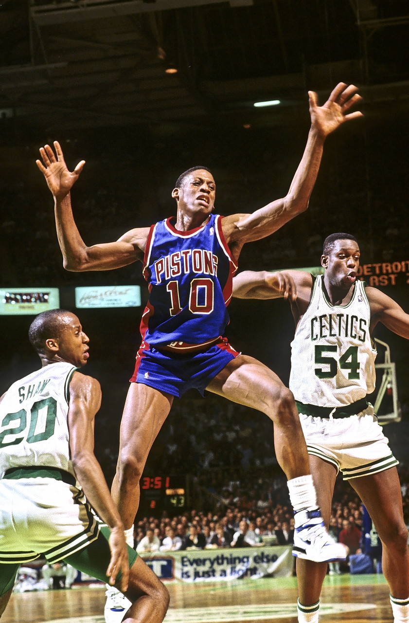 1992年3月4日,活塞隊(duì)110-107戰(zhàn)勝步行者。比賽中活塞悍將羅德曼瘋狂搶下34個籃板,創(chuàng)了個人生涯紀(jì)錄,同時也創(chuàng)下了球隊(duì)的紀(jì)錄。