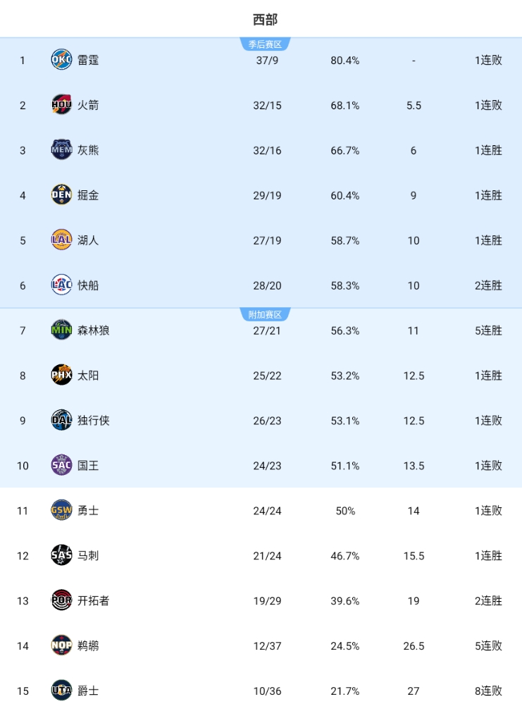 值得一提的是,今年2月1日時,勇士僅排名西部第11。