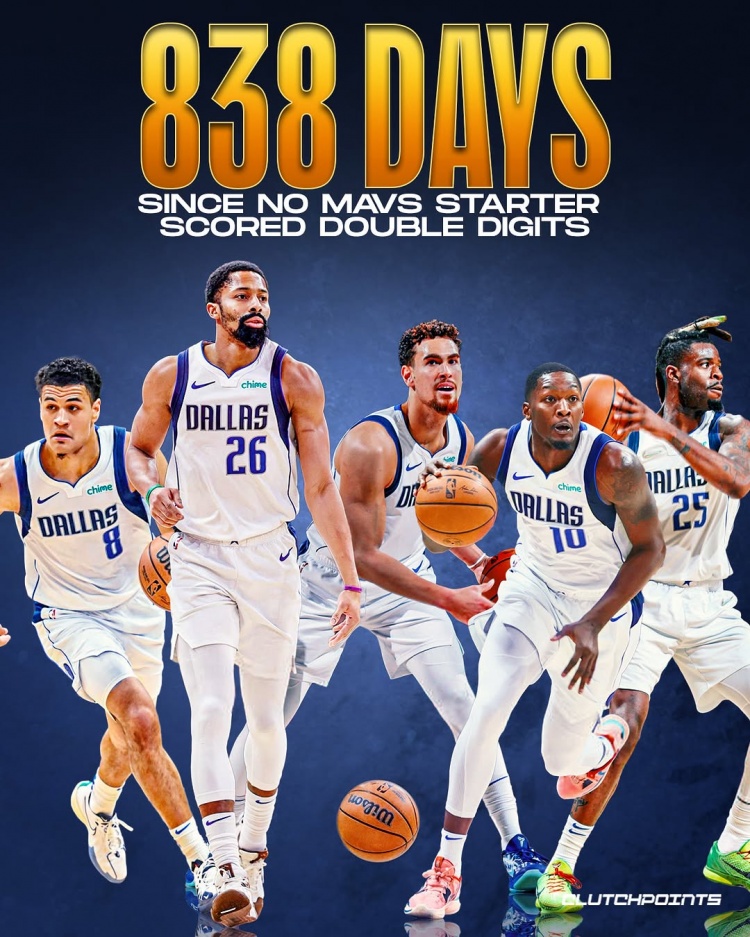 上次獨(dú)行俠沒有首發(fā)得分上雙已838天 可以追溯到2022年11月17日