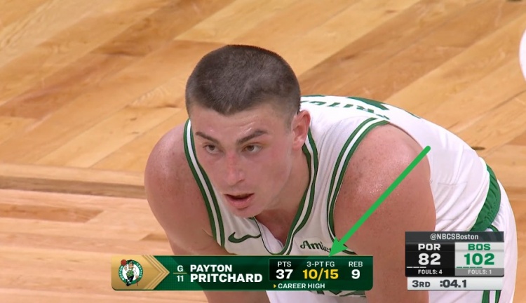 普理查德今天迎來(lái)爆發(fā),前三節(jié)17投12中,三分15投10中,罰球3罰全中,已經(jīng)砍下37分,此外還有9籃板5助攻。其中10記三分是他生涯單場(chǎng)新高。