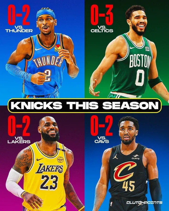欺軟怕硬?尼克斯本季對聯(lián)盟前四騎士/雷霆/綠軍/湖人共0勝9負