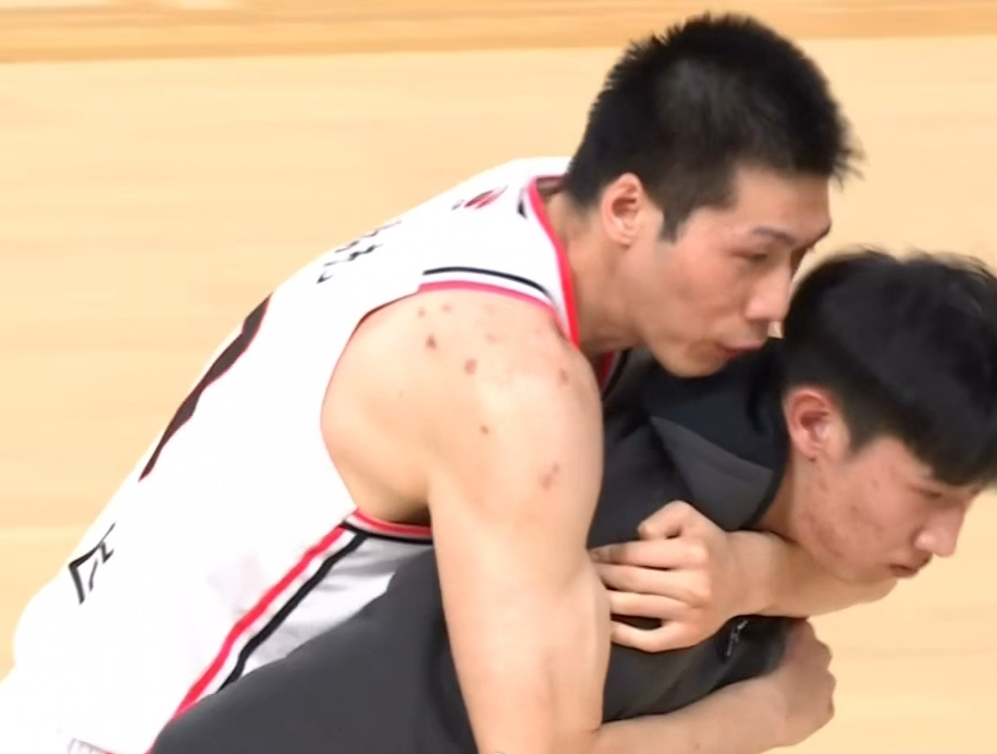 古德溫吃到違體犯規(guī),任駿飛被隊(duì)友背出去了,末節(jié)最后階段任駿飛重新回到場上