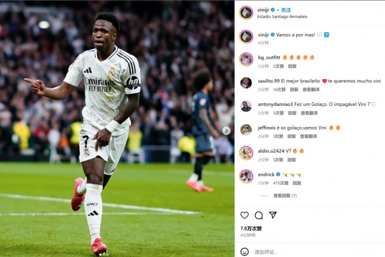 維尼修斯社媒慶祝勝利:讓我們繼續(xù)前進(jìn)贏得更多!