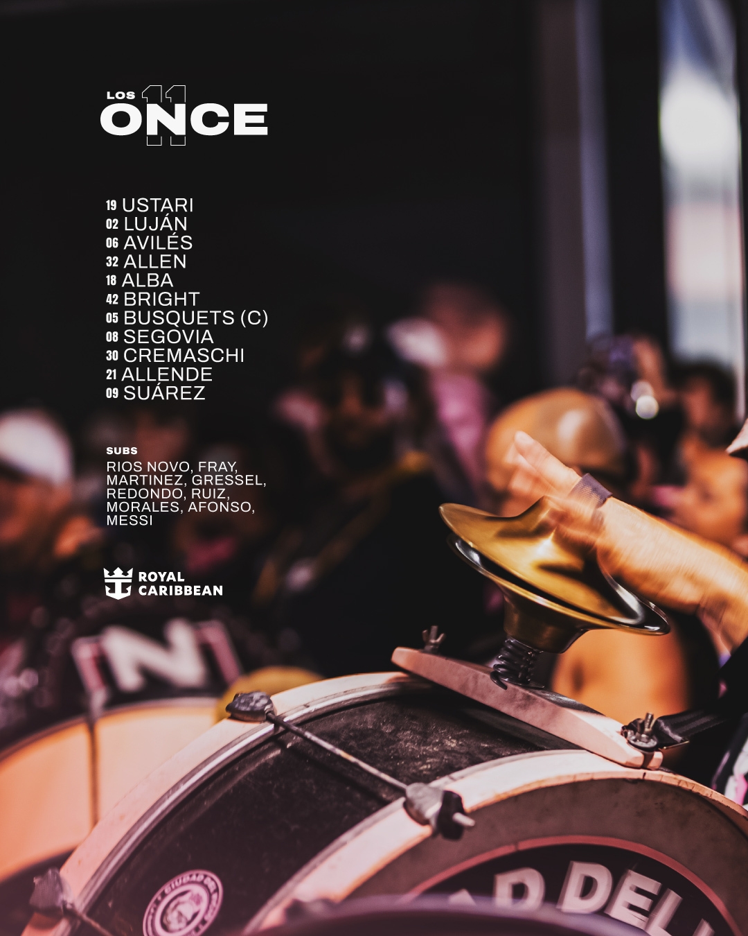 邁阿密國際首發(fā):19-烏斯塔里、2-盧揚(yáng)、6-阿維萊斯、32-阿倫、18-阿爾巴、42-楊尼克-布萊特、5-布斯克茨、8-特拉斯科、30-克雷馬斯基、21-阿連德、9-蘇亞雷斯