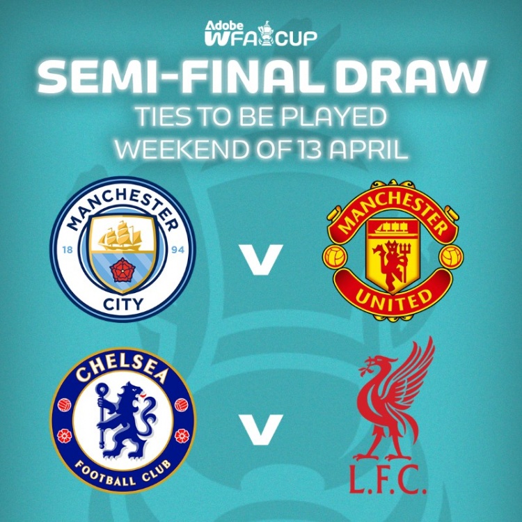 女足足總杯半決賽對(duì)陣:曼城vs曼聯(lián),切爾西vs利物浦