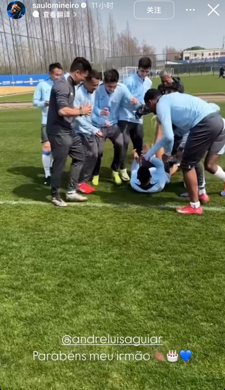 3月10日訊 昨天是申花外援安德烈-路易斯的31歲生日。另一名申花外援米內(nèi)羅更新社媒,曬出球隊(duì)在訓(xùn)練時(shí)為路易斯慶祝的視頻。