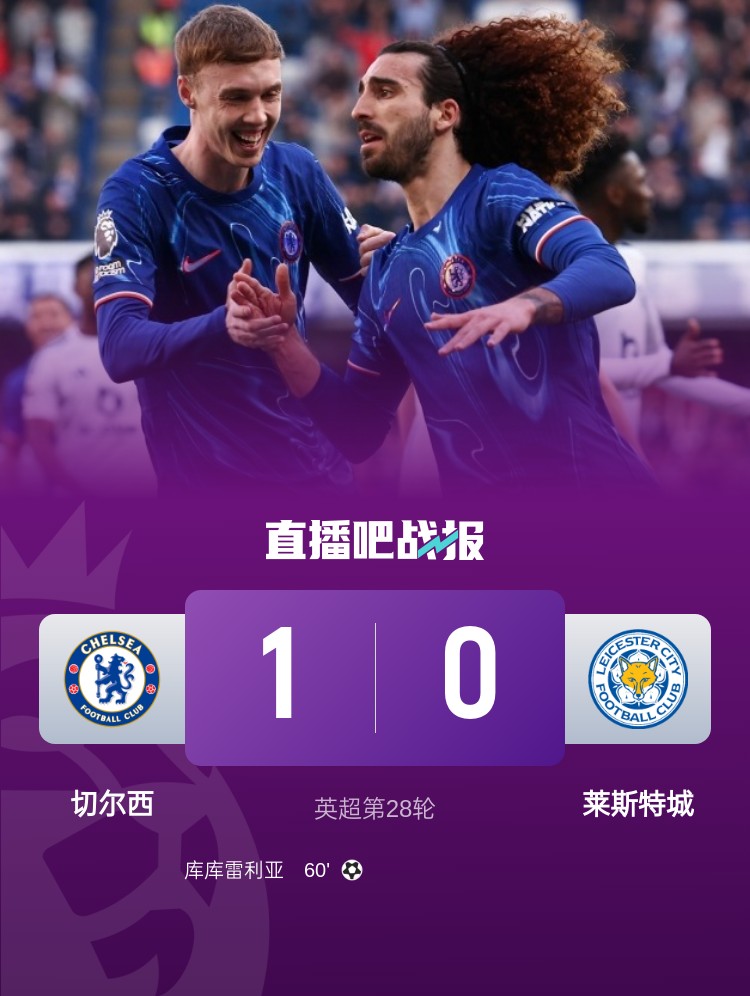 切爾西1-0擊敗萊斯特城,庫庫雷利亞打入全場唯一進球。