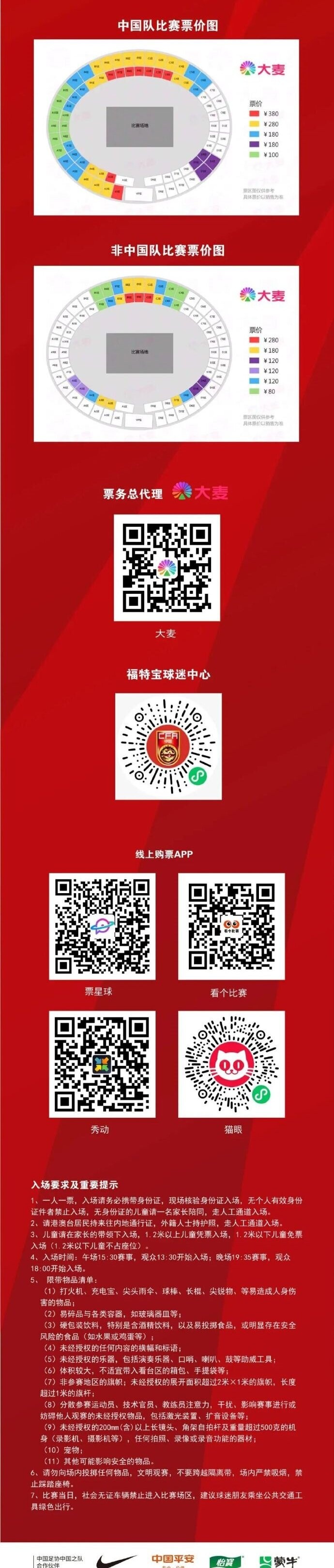 今日(3月10日)17點起賽事門票正式開售!售票平臺包括福特寶球迷中心微信小程序、大麥網(wǎng)、票星球、看個比賽、秀動、貓眼等平臺,具體賽程及詳細票務(wù)信息如下。