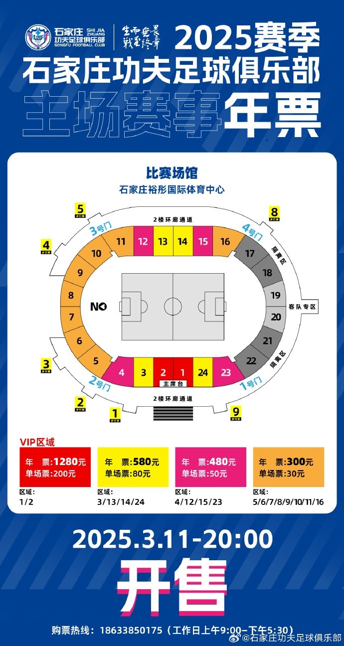 年票預(yù)告|3月11日晚20:00 石家莊功夫2025賽季主場(chǎng)年票開(kāi)售