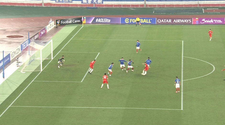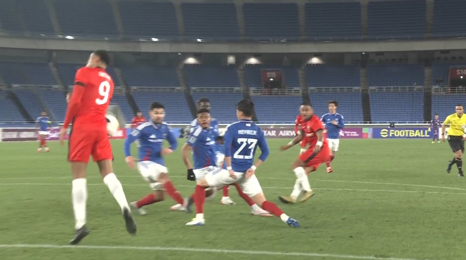 03月11日訊 亞冠精英聯(lián)賽1/8決賽東亞區(qū)次回合,海港vs橫濱水手,比賽第21分鐘,萊昂納多禁區(qū)內(nèi)抽射,皮球打到越位位置的古斯塔沃。