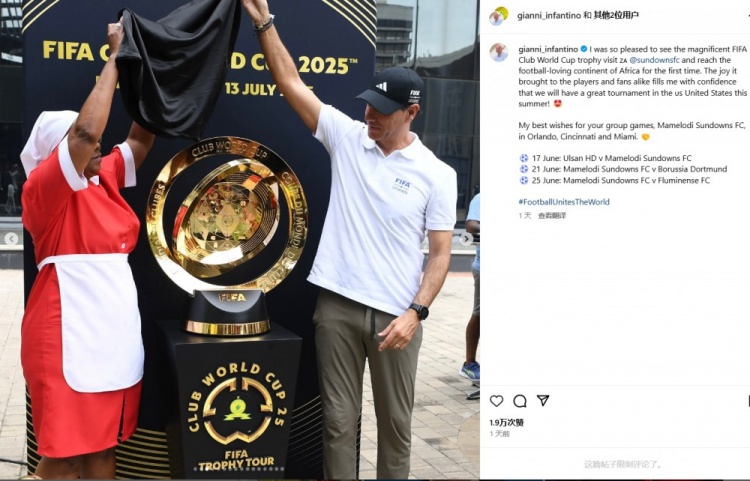 因凡蒂諾:很高興看到世俱杯獎(jiǎng)杯首次抵達(dá)熱愛(ài)足球的非洲大陸