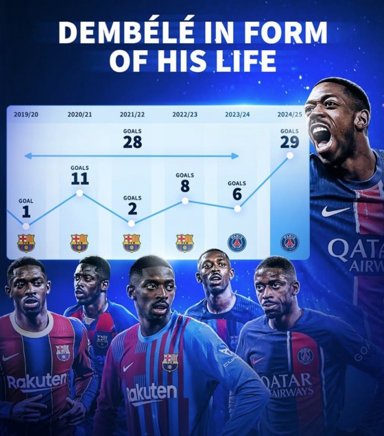 德轉(zhuǎn)數(shù)據(jù)統(tǒng)計(jì)顯示,登貝萊本賽季已經(jīng)打進(jìn)29球,而他此前5個(gè)賽季在俱樂部的總進(jìn)球數(shù)也才28球。
