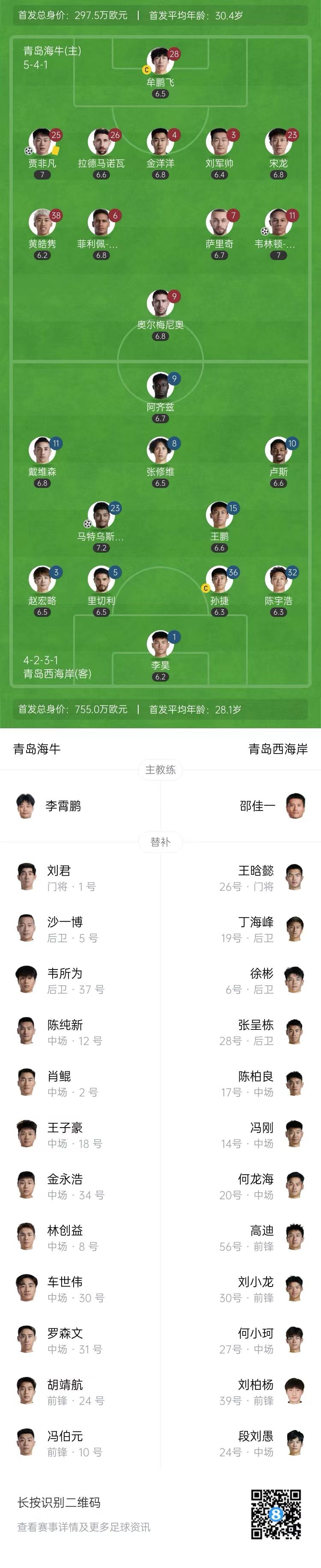 第15分鐘,青島西海岸傳中,劉軍帥解圍頂在馬特烏斯身上,后者順勢(shì)抽射,門(mén)將在門(mén)線(xiàn)內(nèi)將球擋出,皮球疑似打在馬特烏斯手臂上,但馬寧經(jīng)過(guò)VAR回放確認(rèn)進(jìn)球有效!青島西海岸扳平比分,1-1!↓