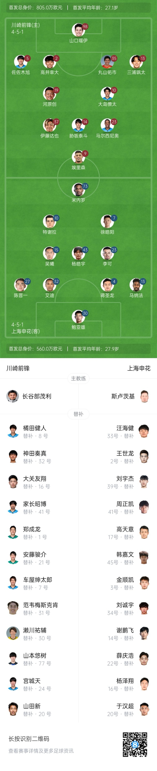 川崎前鋒首發(fā):98-山口瑠伊、2-高井幸大、5-佐佐木旭、13-三浦颯太、35-丸山祐市、10-大島僚太、14-脅坂泰斗、19-河原創(chuàng)、9-埃里松(F)、23-馬爾西尼奧(F)、37-伊藤達哉