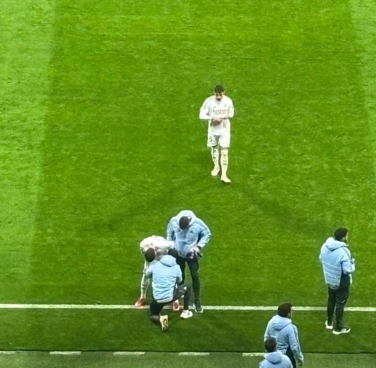 希望無礙,在維尼修斯踢點球的間隙,巴爾韋德在場邊接受治療