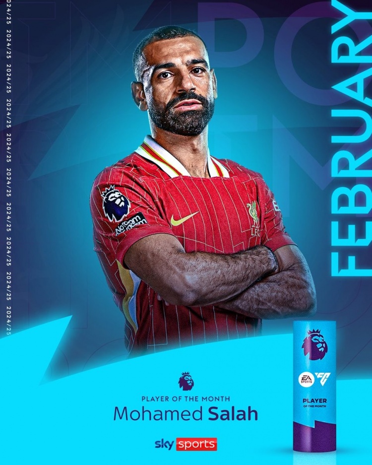 6場6球4助攻!官方:利物浦邊鋒薩拉赫當選英超聯(lián)賽2月最佳球員