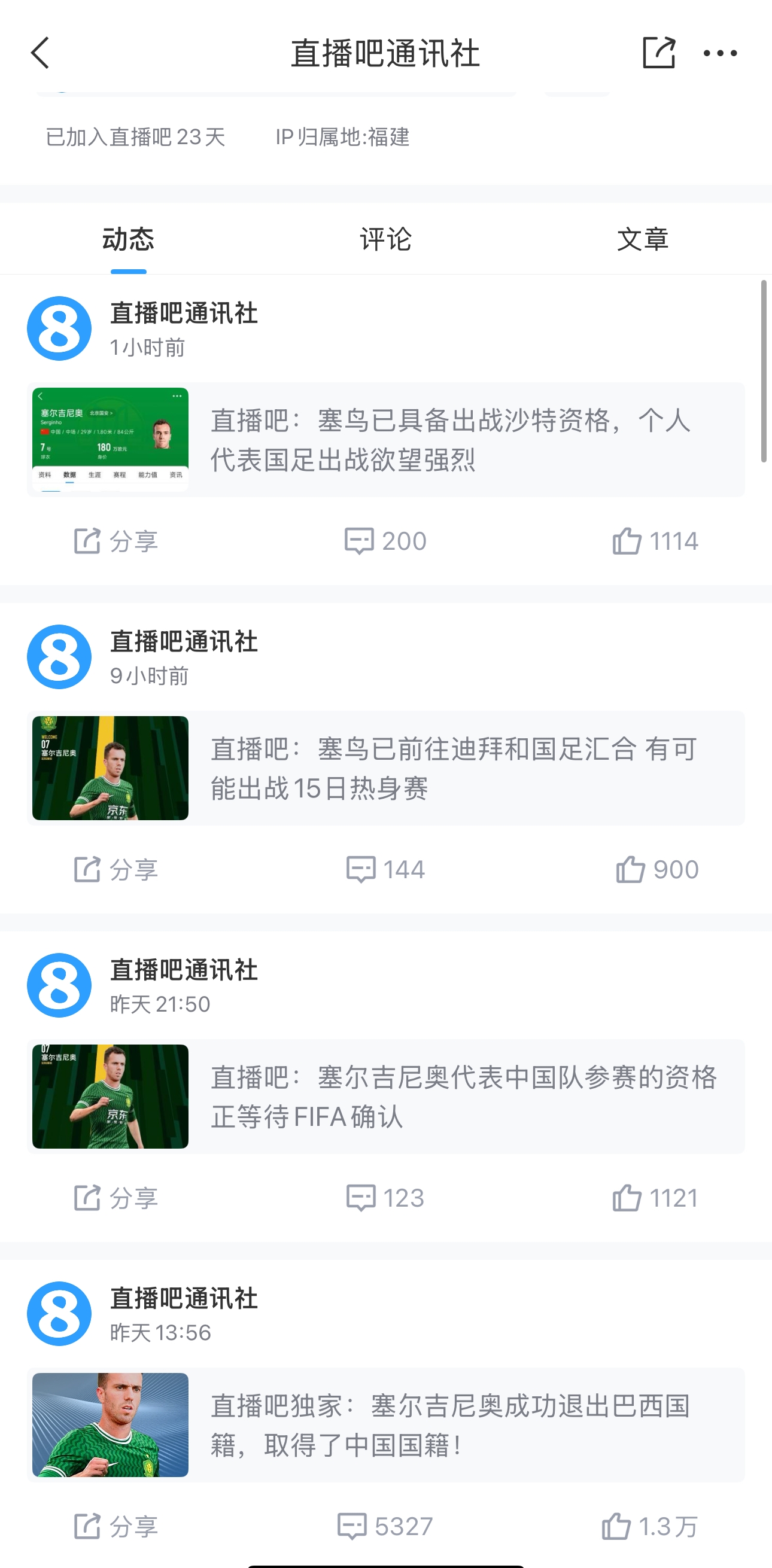 關(guān)注我有更多消息!小吧獨(dú)家爆料塞鳥完成入籍,今天已和國(guó)足會(huì)合