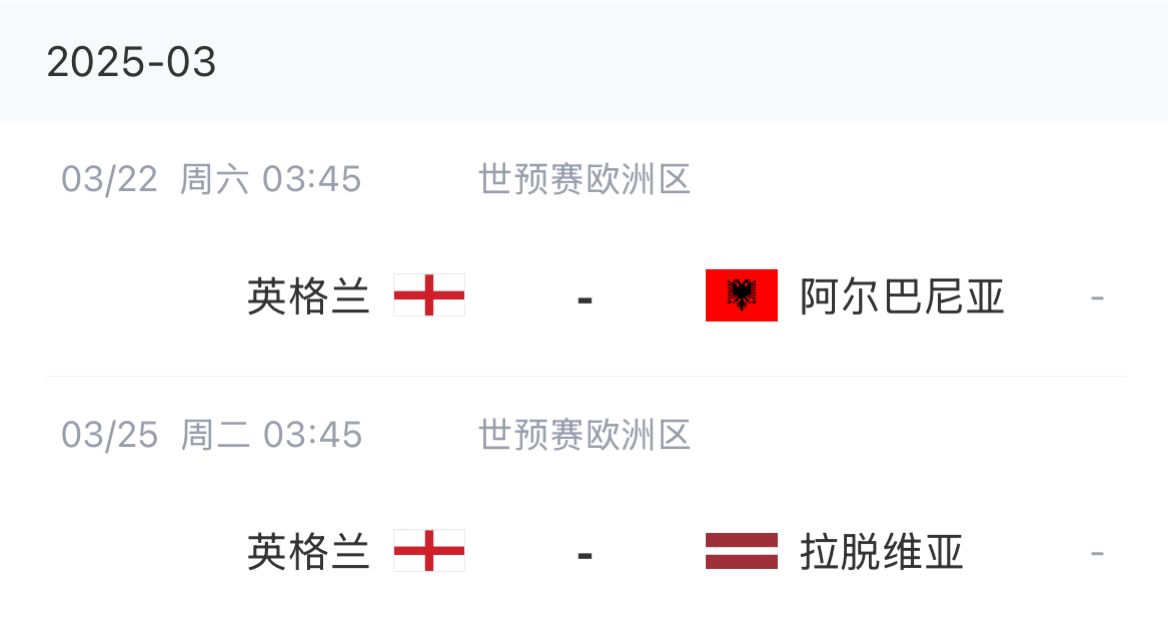 本期英格蘭隊(duì)將在3月底出戰(zhàn)兩場(chǎng)世預(yù)賽,對(duì)手分別是阿爾巴尼亞和拉脫維亞。