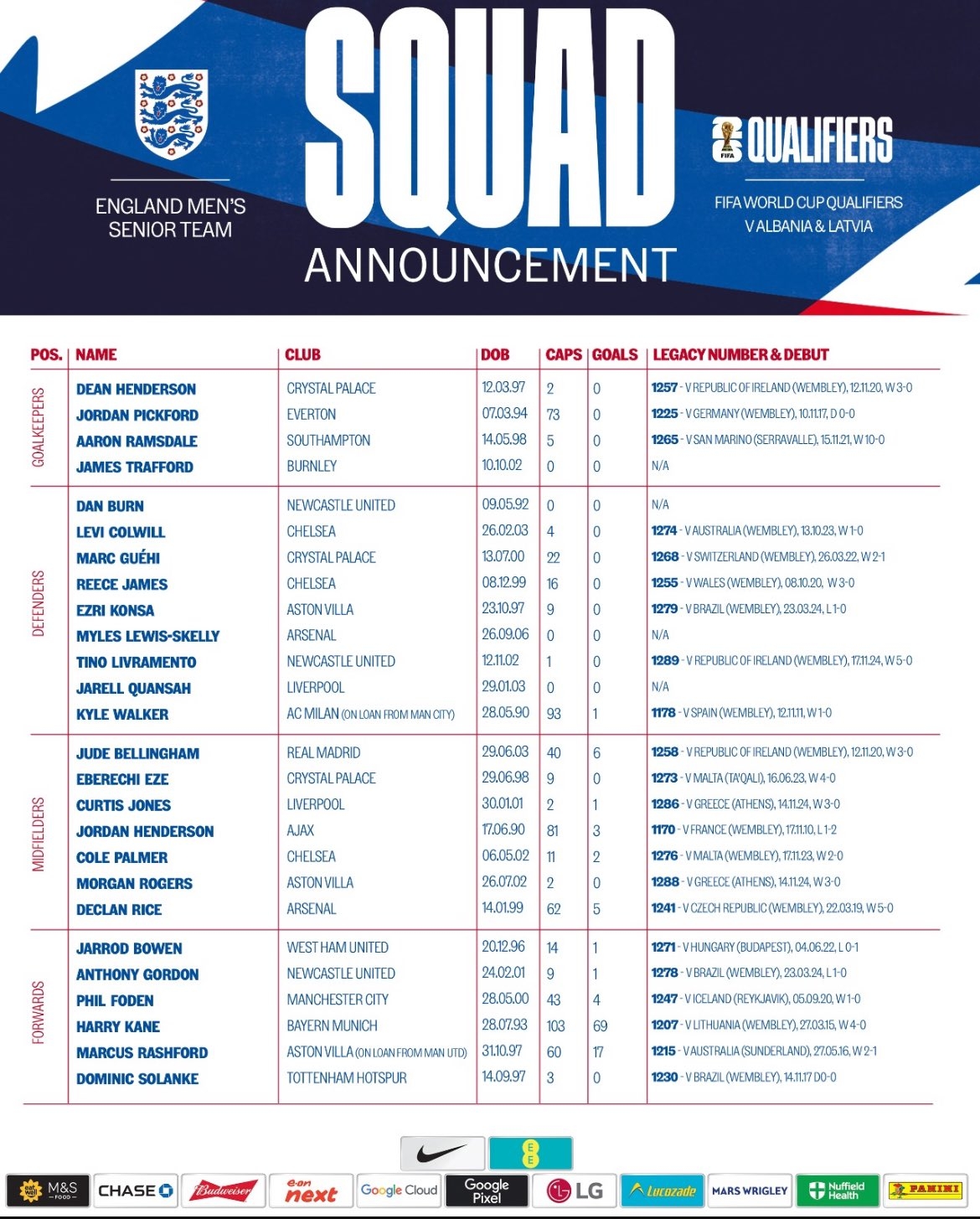 03月14日訊 英格蘭隊(duì)公布了新一期名單,這是新帥圖赫爾執(zhí)教下的首期大名單。