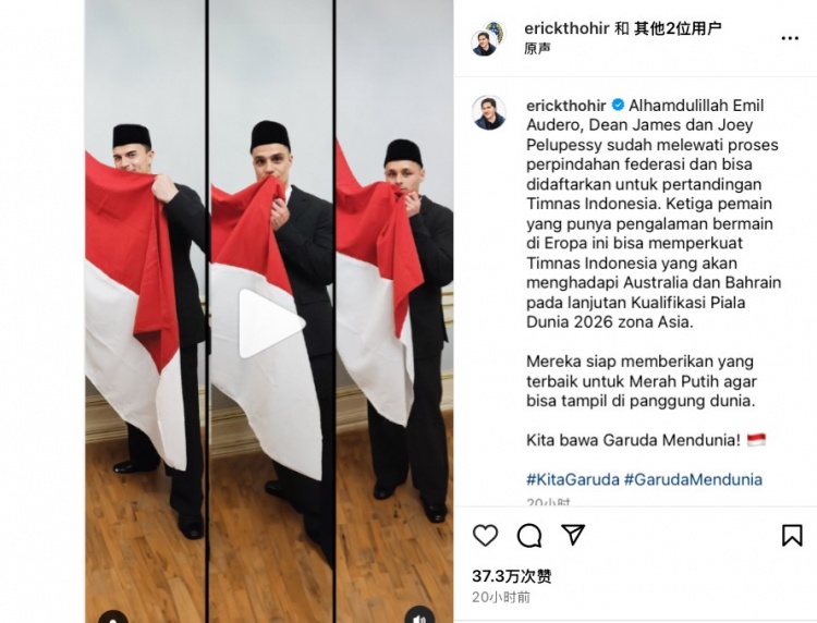 據(jù)印尼足協(xié)主席托希爾社媒消息,印尼足協(xié)已經(jīng)收到國(guó)際足聯(lián)正式來(lái)函,迪恩-詹姆斯、埃米爾-奧德羅、喬伊-佩盧佩已經(jīng)完成了會(huì)籍轉(zhuǎn)換,他們有可能為印尼隊(duì)出戰(zhàn)3月份的18強(qiáng)賽比賽。