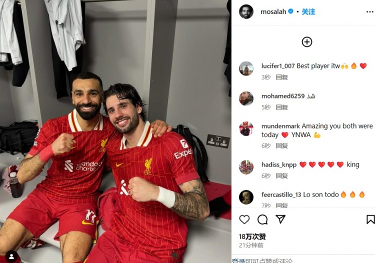 賽后,薩拉赫更新社媒,曬出了同索博斯洛伊在更衣室的合照。