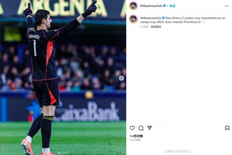 庫爾圖瓦社媒:在艱難客場(chǎng)邁出堅(jiān)定一步并取得3分,很棒的勝利!
