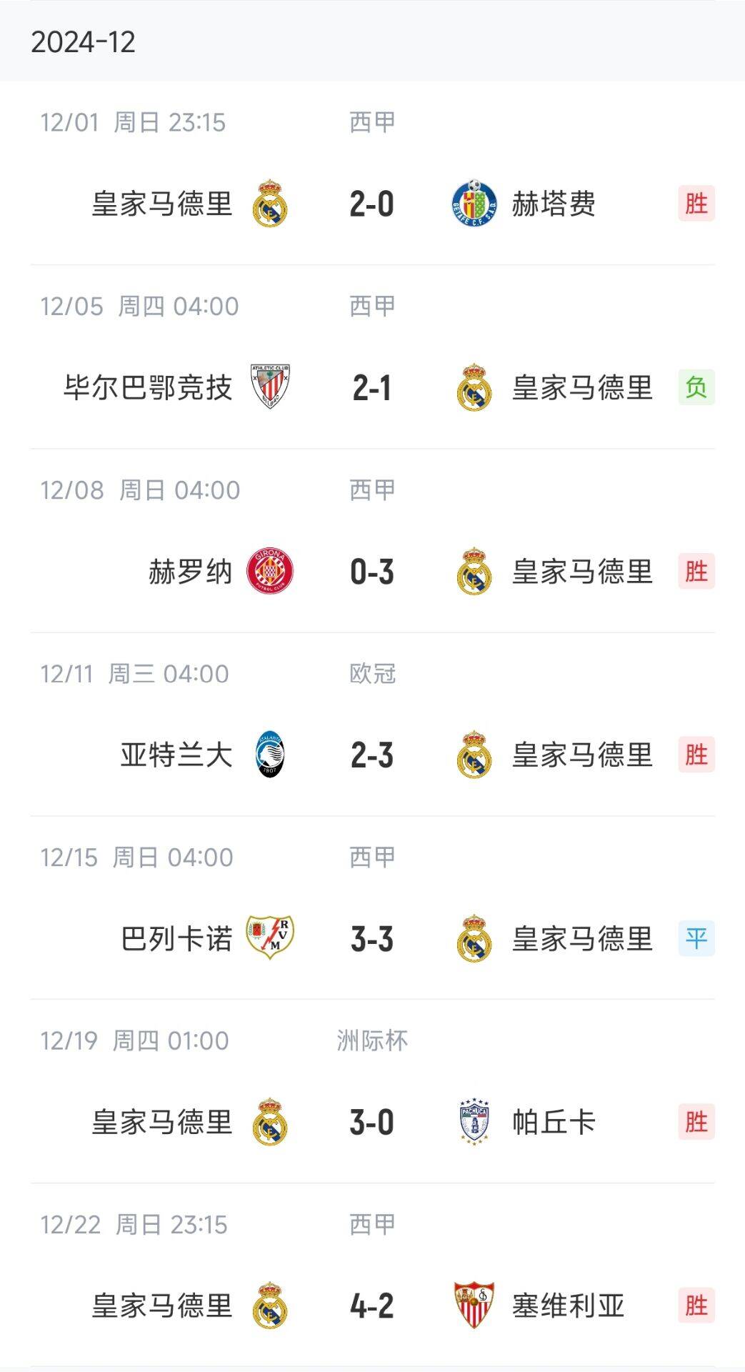 12月是皇馬3天1賽開始的月份,這個月他們21天內打了7場,包括西甲、歐冠和洲際杯。