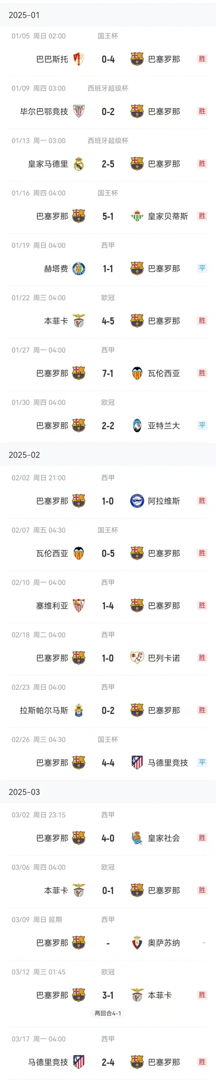 數(shù)據(jù)統(tǒng)計(jì)顯示,自去年年底2連敗之后,巴薩進(jìn)入2025年后各項(xiàng)賽事18場不敗。